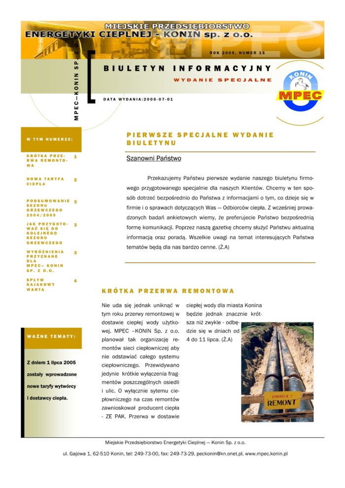 To już dwie dekady, odkąd regularnie dzielimy się z Wami najważniejszymi informacjami z życia naszej firmy, branżowymi nowinkami oraz historiami ludzi, którzy tworzą nasze ciepło każdego dnia. Przez te lata biuletyn był dla nas czymś więcej niż tylko narzędziem komunikacji. To wspólna kronika zmian, wyzwań i sukcesów – świadectwo rozwoju naszej firmy i całego sektora ciepłowniczego. Dziękujemy wszystkim pracownikom, którzy współtworzyli to wydawnictwo: redaktorom, autorom, fotografom i czytelnikom – to dzięki Wam biuletyn ma swój niepowtarzalny charakter. Agata – Kierownik Działu Marketingu i Obsługi Klienta oraz Bartek – Kierownik Działu Informatyki i Automatyki tworzyli pierwszy biuletyn i są z nami do dzisiaj.