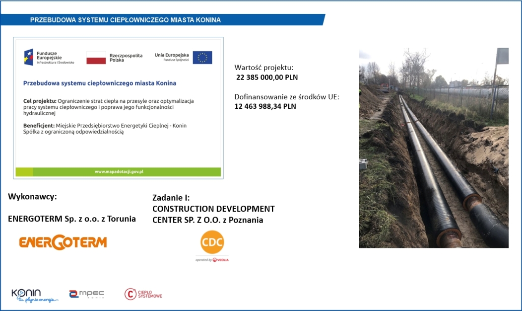 Przebudowana została (z napowietrznej na podziemną w technologii preizolowanej) magistralna sieć ciepłownicza na wyspie Pociejewo, co w konsekwencji daje możliwość przebudowy systemu komunikacyjnego w obrębie stadionu i ulicy Wojska Polskiego. W zamian za zlikwidowane sieci napowietrzne wybudowane zostały podziemne sieci preizolowane, zlokalizowane m.in. w ulicach: Żwirki i Wigury, Wodnej, Szarych Szeregów, Kościelnej, Grunwaldzkiej, Stanisława Staszica, Tadeusza Kościuszki, Szpitalnej, Józefa Piłsudskiego, Józefa Bema, Kolskiej, Reformackiej, Świętojańskiej, Parowej, Zagórowskiej, Górniczej, Al. 1-go Maja, Bydgoskiej, Dworcowej, Hurtowej, Ogrodowej.