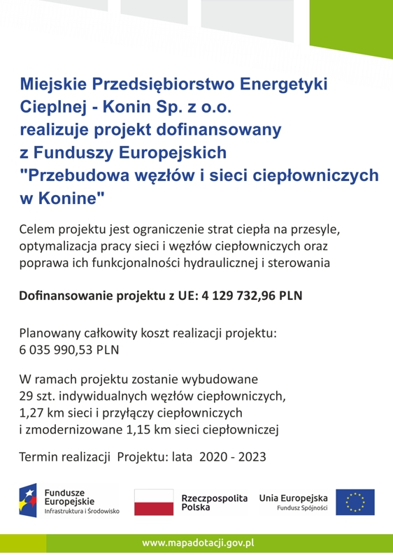 W pierwszej kolejności został wykonany odcinek nr 1, umożliwiający zakończenie robót drogowych, inwestycji prowadzonej przez Zarząd Dróg Miejskich w Koninie. Następnie wykonano odcinek nr 2 i jako ostatni odcinek nr 3 (ułożenie sieci pod ul. Przemysłową i Okólną), który w dużej części wykonany został metodą bezwykopową.