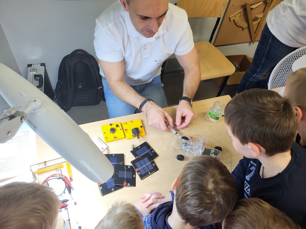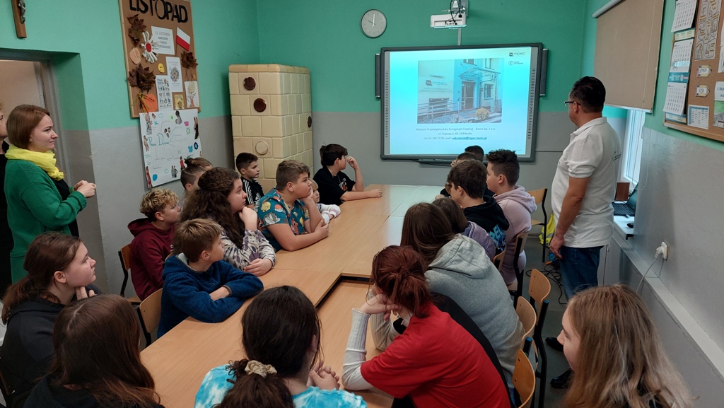 Projekt „Wielkopolskie Ciepło przyjazne środowisku – modernizacja sali edukacji ekologicznej dla Wielkopolski Wschodniej” współfinansowany ze środków Wojewódzkiego Funduszu Ochrony Środowiska i Gospodarki Wodnej w Poznaniu umożliwia prowadzenie zajęć zarówno w siedzibie MPEC-Konin, jak i w konkretnych placówkach oświatowych. 23 listopada na zaproszenie dyrekcji placówki odwiedziliśmy Szkołę Podstawową im. Janusza Korczaka w Woli Podłężnej. Wykorzystując mobilne laboratorium przeprowadziliśmy zajęcia z edukacji ekologicznej i odnawialnych źródeł energii. W zajęciach uczestniczyły dzieci oraz kadra pedagogiczna szkoły. Po części teoretycznej dotyczącej smogu oraz zielonych źródeł ciepła poprowadziliśmy część praktyczną, która cieszyła się dużym zainteresowaniem uczniów. Mogli oni na własne oczy zobaczyć jak produkuje się wodór oraz napędzany nim model pojazdu. Zdumienie wywołały również modele samochodów wykorzystujących energię wody. Do tego prezentacja instalacji wykorzystującej energię słońca (fotowoltaika) oraz wiatru (turbina wiatrowa), a wszystko dopełniła część zabawowa (puzzle, krzyżówki i rebusy) dotycząca ekologii. Jednocześnie MPEC-Konin miał okazję wziąć udział w programie „Otwarta firma” w ramach światowego tygodnia przedsiębiorczości. Na koniec podziękowania i dyplomy dla klas. Dziękujemy dyrekcji i gronu pedagogicznemu szkoły za wspaniałą atmosferę i aktywny udział w zajęciach. W przyszłym tygodniu kolejna szkoła i kolejne zajęcia z edukacji ekologicznej. Zapraszamy do współpracy wszystkie placówki oświatowe, nie tylko z Konina, ale całej Wielkopolski Wschodniej.