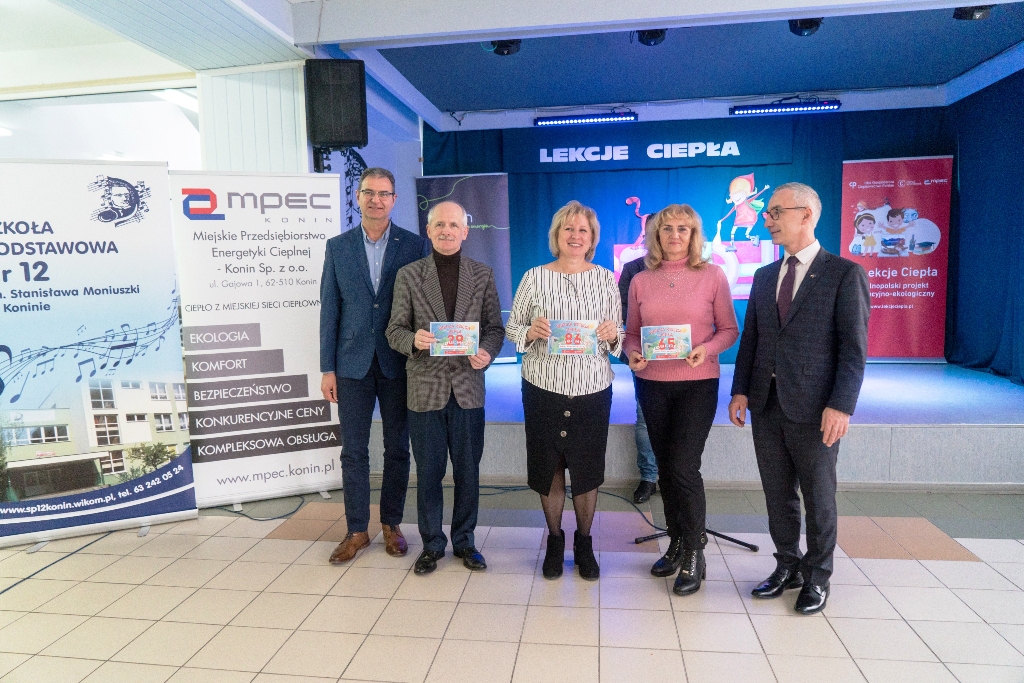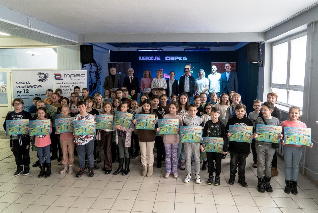 Projekt „Lekcje ciepła” realizowany jest w konińskich szkołach podstawowych od ubiegłego roku. W pierwszej edycji uczestniczyło ponad 600 uczniów. Inauguracja drugiej edycji projektu odbyła się 13 grudnia w Szkole Podstawowej nr 12. Tym razem udział zadeklarowało blisko tysiąc uczniów konińskich podstawówek. Równolegle realizowany był również z inicjatywy Izby Gospodarczej Ciepłownictwo Polskie tzw. test wiedzy o cieple. Dla 1000 uczniów z całej Polski, które wzięły udział w teście, ufundowane zostały albumy pod nazwą „Wielka Księga Ciepła”. Konińscy uczestnicy projektu zdobyli aż 180 albumów. Dało to nam trzecie miejsce w klasyfikacji miast w Polsce, co jak na debiutanta należy uznać za duży sukces. Nagrody wywalczyły: Szkoła Podstawowa nr 6, Szkoła Podstawowa nr 12 oraz Szkoła Podstawowa nr 15. Z uwagi na fakt, że liderem w tej kategorii okazała się „dwunastka”, tam właśnie dokonano wręczenia albumów. Ceremonia odbyła się z udziałem Zastępcy Prezydenta Miasta Konina Witolda Nowaka, który pogratulował wyróżnionym oraz zainaugurował drugą edycję projektu „Lekcje ciepła w Koninie”. Podziękowania należą się dyrekcji i pracownikom Szkoły Podstawowej nr 12 za przygotowaną scenografię oraz program artystyczny. Podczas uroczystości czynne było również stoisko laboratoryjne Ekoprzestrzeni MPEC-Konin, gdzie dzieci mogły obejrzeć modele turbin wodnych i wiatrowych, samochody napędzane wodorem, słoną wodą i sprężonym powietrzem. Pomysłodawcą i koordynatorem projektu jest lokalny dostawca ciepła systemowego MPEC-Konin Sp. z o.o.