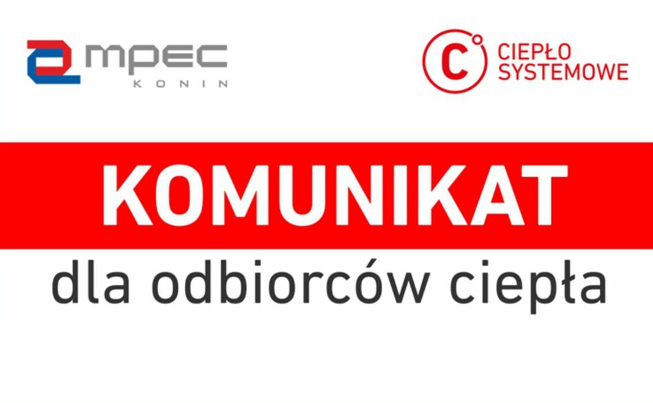 Komunikat dla odbiorców ciepła dostarczanego przez MPEC-Konin Sp. z o.o. siecią nr 1.