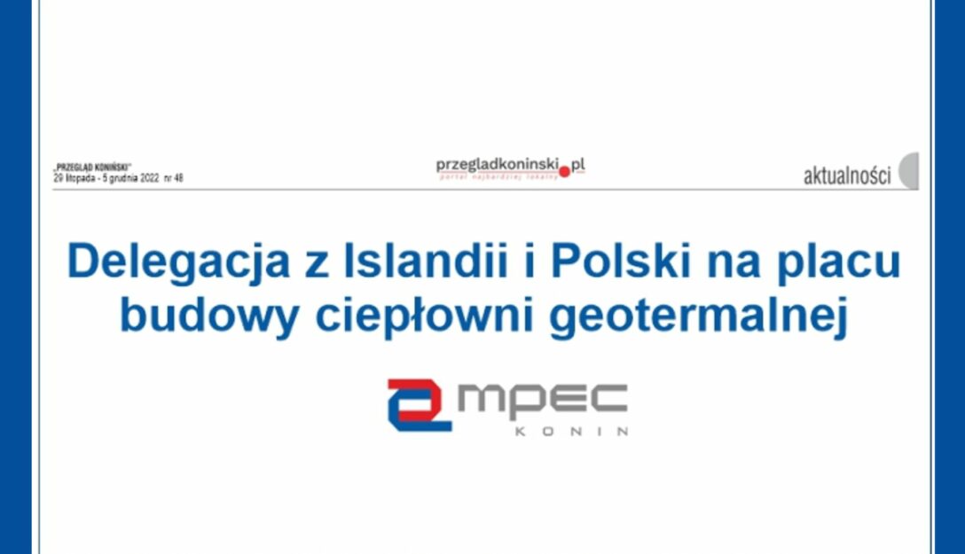 W dniach 14-16 listopada gościliśmy w Koninie przedstawicieli branży geotermalnej z Islandii oraz pracowników Instytutu Gospodarki Surowcami Mineralnymi i Energii PAN w Krakowie. A wszystko to w ramach projektu KeyGeothermal „Budowanie zdolności kluczowych zainteresowanych stron w dziedzinie energii geotermalnej”, dofinansowanego ze środków Mechanizmu Finansowego EOG na lata 2014-2021. Partnerzy projektu są wiodącymi instytucjami w branży geotermalnej w swych krajach. Skupiają ekspertów o dużym doświadczeniu i dorobku w zakresie badań, praktyki, a także działań szkoleniowych związanych z geotermią. Koordynatorem projektu ze strony islandzkiej jest Baldur Pétursson, natomiast kierownikiem projektu prof. Beata Kępińska z IGSMiE PAN, prezes Polskiego Stowarzyszenia Geotermicznego. Podczas roboczej wizyty w Koninie goście zwiedzili plac budowy ciepłowni geotermalnej na Pociejewie, Zakład Termicznego Unieszkodliwiania Odpadów (MZGOK Sp. z o.o. w Koninie) oraz bloki biomasowe w Elektrowni Konin (PAK-PCE Biopaliwa i Wodór sp. z o.o.). W spotkaniach uczestniczył prezydent Piotr Korytkowski, prezes Sławomir Lorek wraz z pracownikami MPEC-Konin, prezesi firm zaangażowanych w realizację budowy ciepłowni geotermalnej: UOS Drilling S.A., Energy Solutions sp. z o.o., Proinsol sp. z o.o. Nie zabrakło wymiany doświadczeń między stronami, a także dyskusji na temat przyszłości niskoemisyjnego ciepłownictwa opartego na źródłach geotermalnych. Program projektu obejmuje m. in. eksperckie wizyty studyjne, działania szkoleniowe oraz dzielenie się doświadczeniem i dorobkiem dotyczącym branży geotermalnej. Co warte podkreślenia, ponad 25% obywateli Unii Europejskiej zamieszkuje obszary, gdzie znajdują się zasoby geotermalne odpowiednie do ich zastosowania w ciepłownictwie (systemy c.o. działają w 22 krajach). Jest to duży potencjał, którego nie wolno nam zmarnować, by produkować czyste odnawialne ciepło.