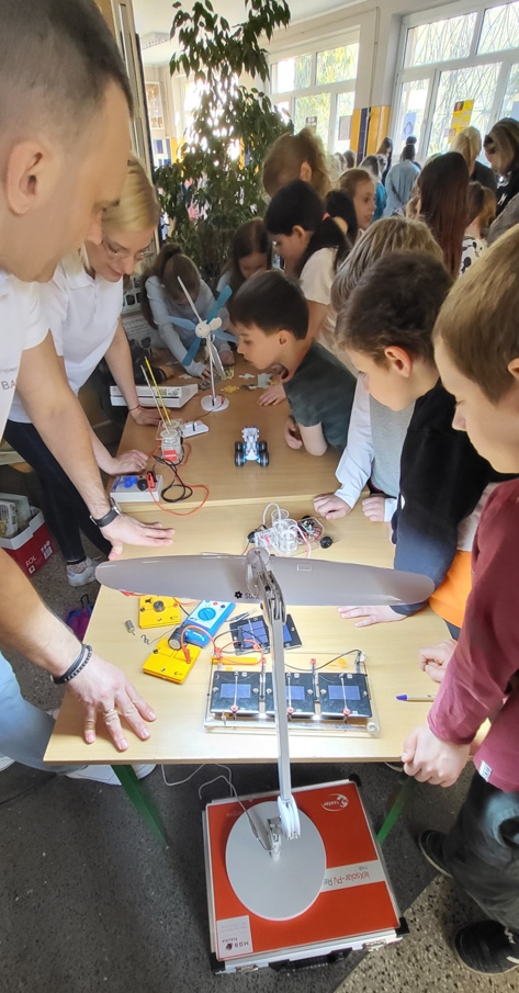Ponad 500 uczestników zajęć prowadzonych przez MPEC-Konin w ramach projektu „Wielkopolskie ciepło przyjazne środowisku” – to bilans tego tygodnia. W środę mieliśmy przyjemność wziąć udział w konferencji „Postaw na Słońce”, która odbyła się w Zespole Szkół Ogólnokształcących i Technicznych w Kleczewie. Super organizacja, pełna aula, wykład i laboratorium wspólnie z doradcą energetycznym z WFOŚiGW w Poznaniu. Czwartek to wizyta w Przedszkolu nr 31 w Koninie (pozdrawiamy grupę Motylki). Dzisiaj wizyta w Szkole Podstawowej nr 8 – obchody Dnia Ziemi. Jak zwykle największe zainteresowanie budziły nasze modele pojazdów zasilanych wodorem, wodą z dodatkiem sprężonego powietrza czy też słoną wodą. Do tego mini instalacja geotermalna, fotowoltaiczna oraz turbina wiatrowa. Odpoczywamy w weekend, a od poniedziałku ruszamy w dalsza trasę… Warto przy tym dodać, że realizacja projektu nie byłaby możliwa bez wsparcia Wojewódzkiego Funduszu Ochrony Środowiska i Gospodarki Wodnej w Poznaniu.