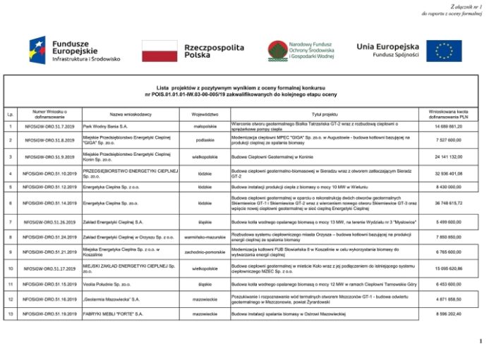Wniosek Miejskiego Przedsiębiorstwa Energetyki Cieplnej – Konin o dofinansowanie budowy ciepłowni geotermalnej otrzymał pozytywny wynik z oceny formalnej w konkursie Narodowego Funduszu Ochrony Środowiska i Gospodarki Wodnej. Teraz czas na ocenę merytoryczną. Geociepłownia będzie kosztować około 46 milionów złotych netto. Kwota obejmuje budowę zakładu, realizację otworu zatłaczającego (chłonnego) GT-3 oraz przyłącze do miejskiej sieci ciepłowniczej. Zakładane dofinansowanie tego projektu z NFOŚiGW wynosi 56 procent.